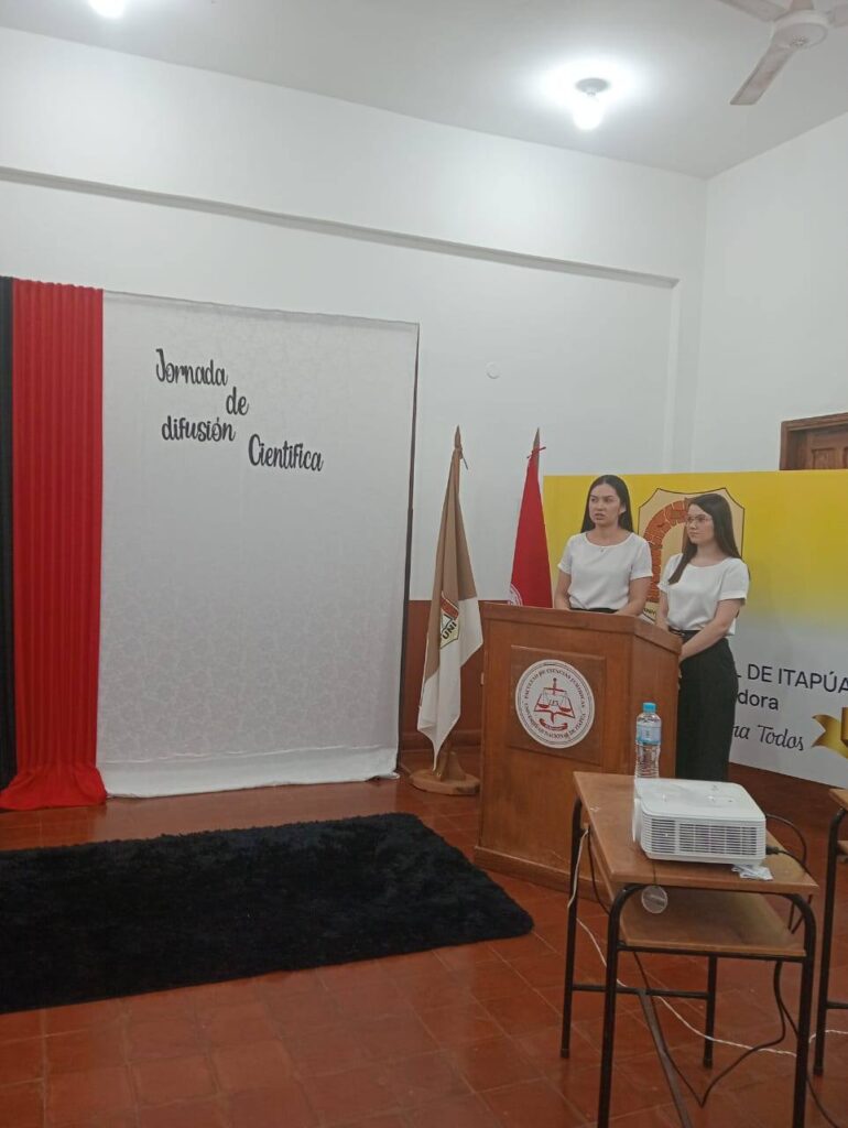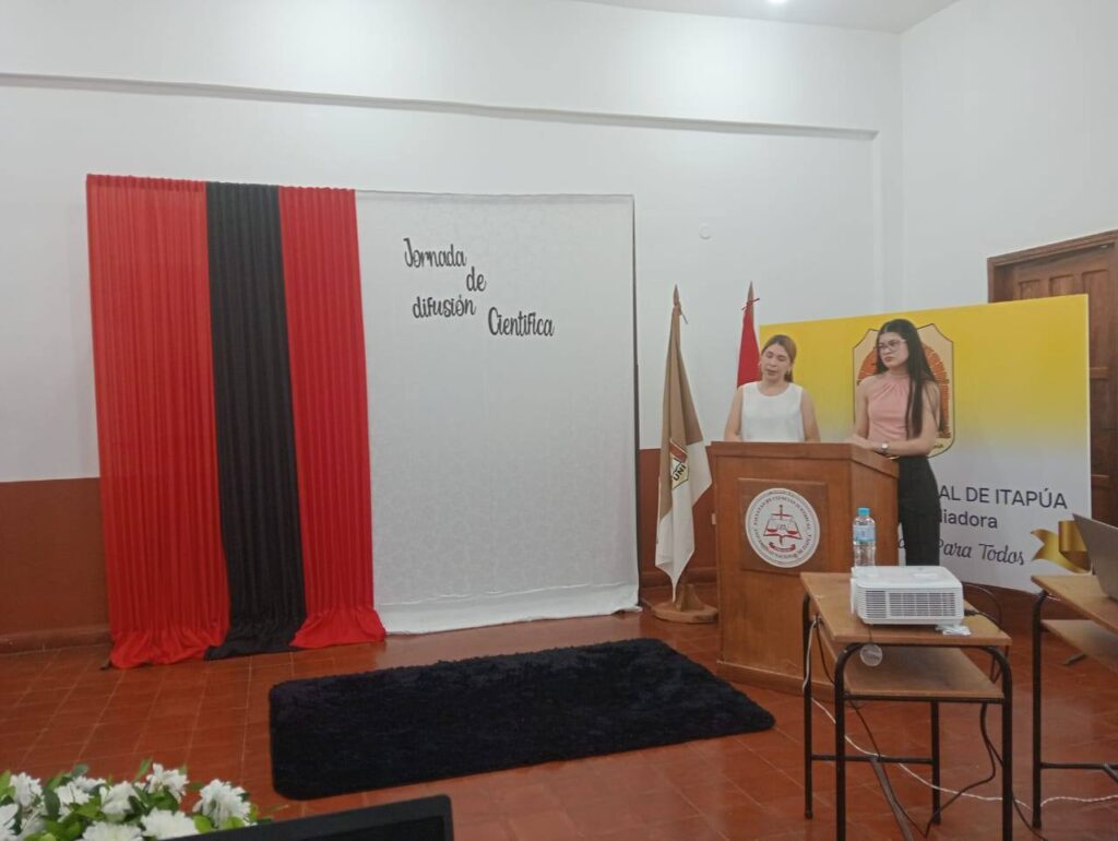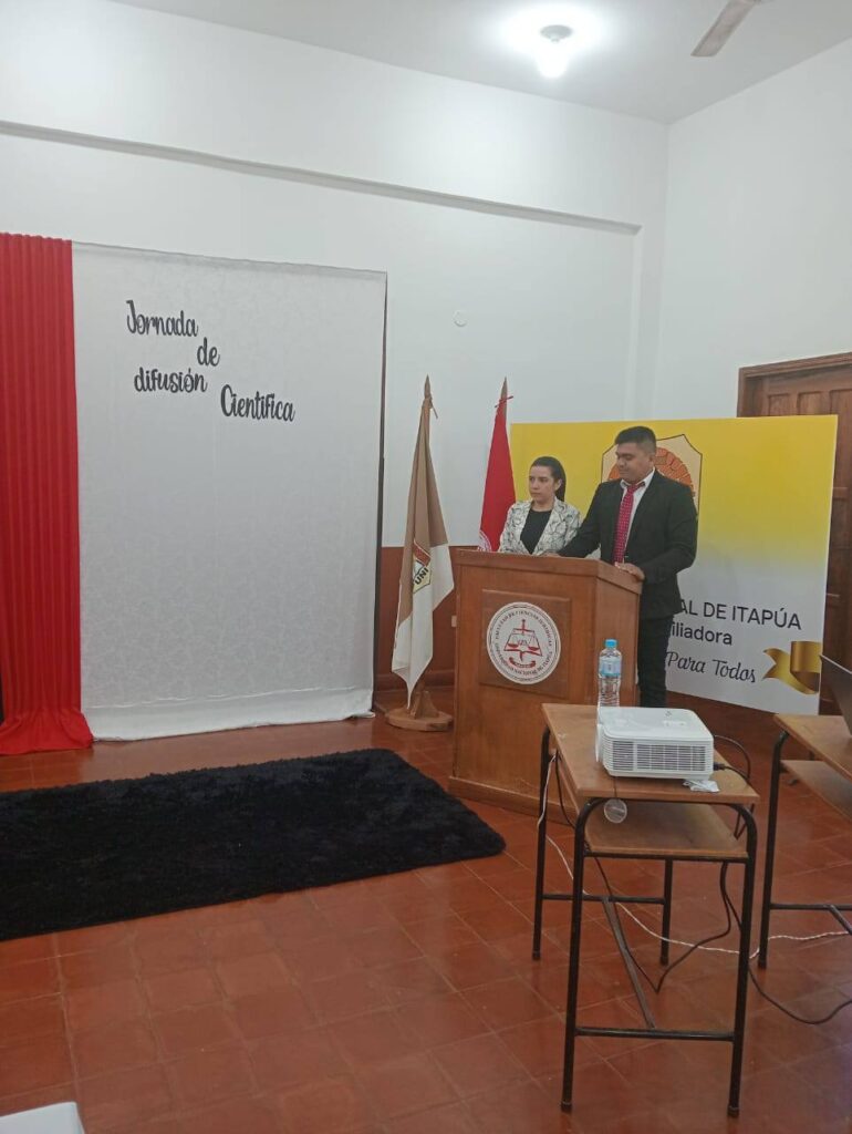 La Facultad de Ciencias Jurídicas de la Universidad Nacional de Itapúa llevó a cabo hoy la Jornada de Difusión Científica en la Filial María Auxiliadora, espacio académico destinado a socializar los avances y resultados de los proyectos interdisciplinarios y de la curricularización de la investigación desarrollados por estudiantes del 3er y 4to curso de la Carrera de Derecho.