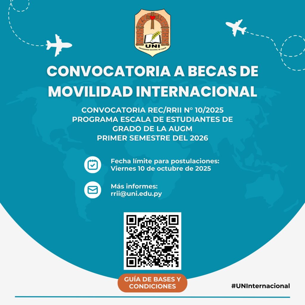 6 de octubre de 2025 2025-10-06 17:34🌍✈️ Convocatoria Primer Semestre 2026 – Becas de Movilidad Internacional, Programa ESCALA/AUGM