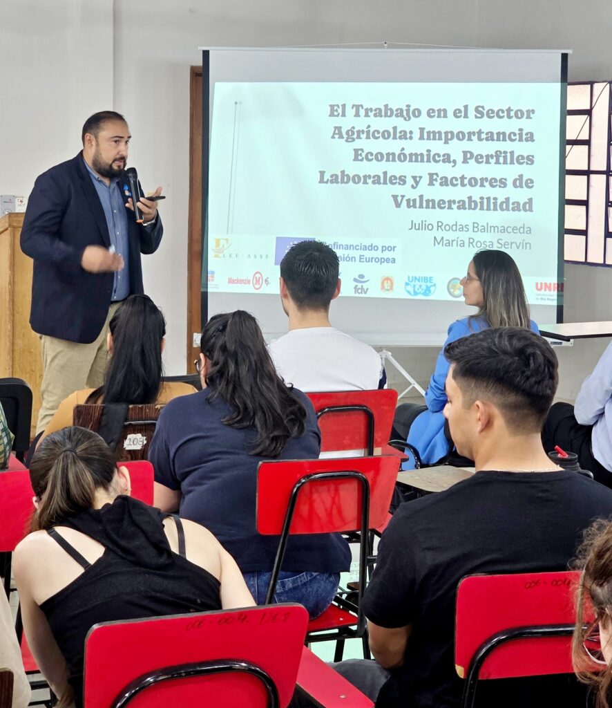 La jornada inició con la presentación del Prof. Ing. Agrop. Julio Rodas Balmaceda, quien brindó una contextualización general sobre la explotación laboral en el sector agrícola, resaltando la importancia de analizar este fenómeno desde una perspectiva académica, social y productiva.