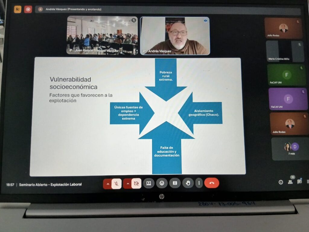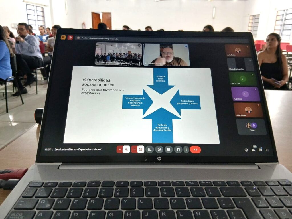Este viernes 21 de noviembre, desde las 18:00 horas, se llevó a cabo el Seminario Abierto “Explotación Laboral en Ámbito Agrícola: Factores Determinantes y Mecanismo de Respuesta”, dirigido a estudiantes de la Facultad de Ciencias Jurídicas de la Universidad Nacional de Itapúa (UNI).